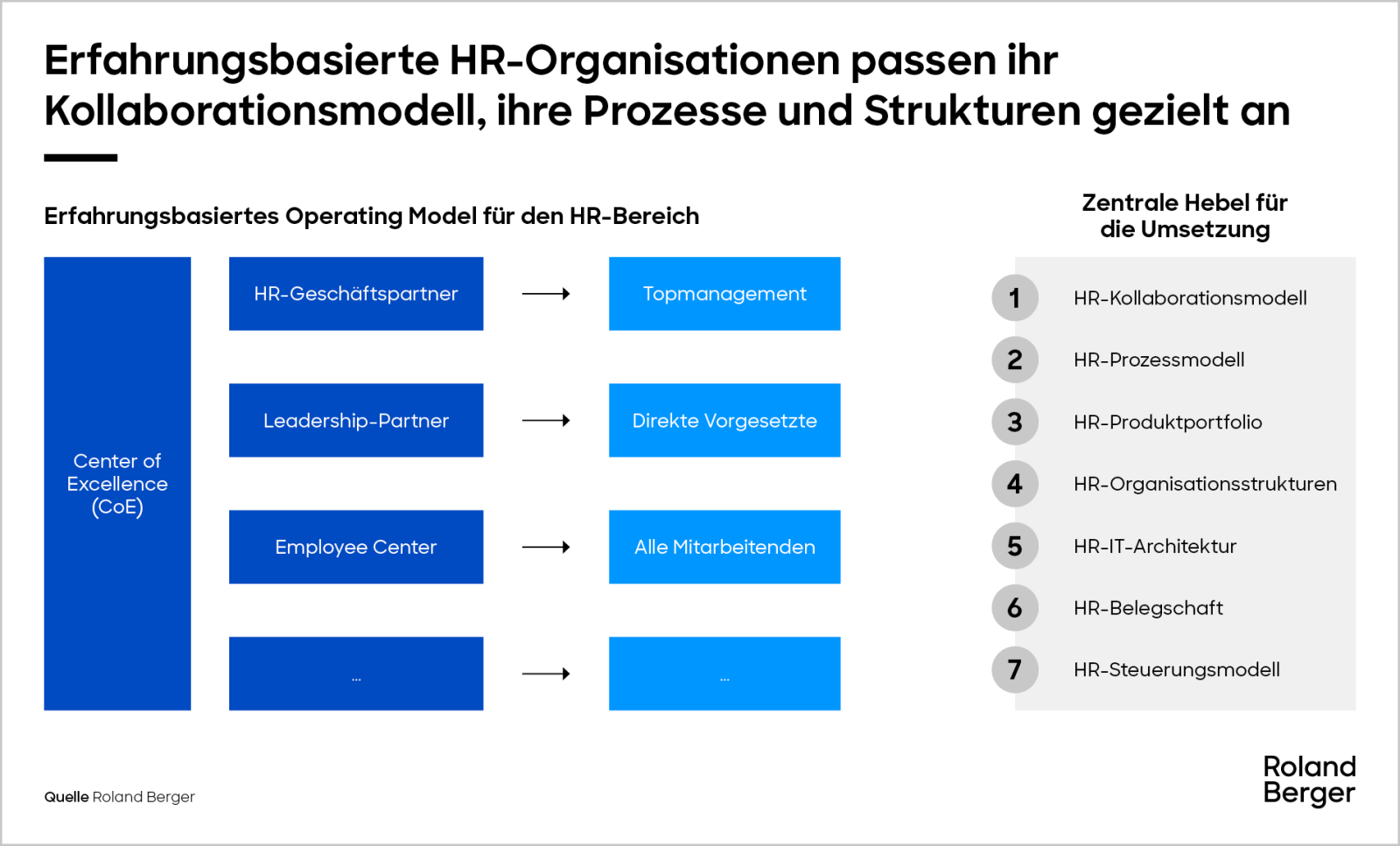 Das traditionelle, auf drei Säulen basierende HR-Modell aus Geschäftspartnern, Kompetenzzentren (CoEs) und Shared Service Centern stößt an seine Grenzen. Es kann mit neuen Kundenanforderungen nicht mehr Schritt halten und führt zu HR-Produkten, die oft ohne konsistente Gesamtlogik gesteuert werden.