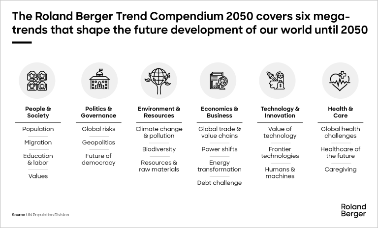 The Roland Berger Trend Compendium 2050 covers six megatrends shaping the world between now and 2050.