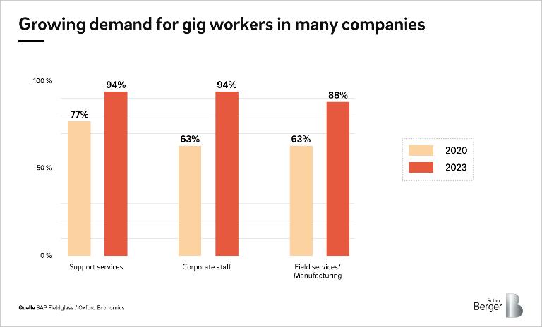 Wie hoch der Bedarf an Gig Workern ist, hat eine Studie von SAP Fieldglass und Oxford Economics jüngst ermittelt. Das Ergebnis: 38 Prozent der befragten Manager haben bereits über die einschlägigen Plattformen im Internet Freelancer rekrutiert. In vielen Unternehmen wird der Bedarf zukünftig noch größer werden. Für die nächsten Jahre prognostiziert die Studie einen deutlichen Anstieg der Nachfrage.