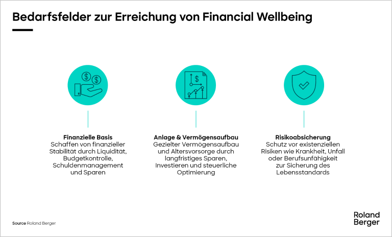 Beim Thema Financial Wellbeing gibt es keine 'One size fits all'-Lösung. Jegliches Angebot muss sich an den realen Bedarfen orientieren. Das von Roland Berger entwickelte mehrdimensionale Framework strukturiert diese individuellen Bedarfe und macht eine zielgerichtete Adressierung möglich.