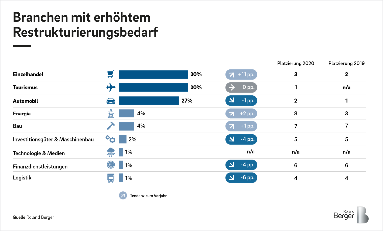 Einzelhandel, Reise- und Autobranche mit erhöhtem Restrukturierungsbedarf