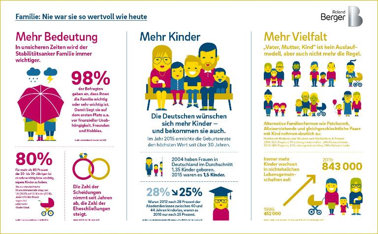 - Vereinbarkeit #1 - Werfen Sie mit uns einen Blick in deutsche Wohnzimmer und erfahren Sie, welche Rolle Familie heute spielt, wie es um die Kinderwünsche junger Frauen und Männer bestellt ist und wie sie eigentlich lebt, die „typische“ Familie von heute. Hier geht es los. Mit der ersten Infografik unserer neuen Serie zur Vereinbarkeit von Familie und Beruf in Deutschland. Stay tuned.
