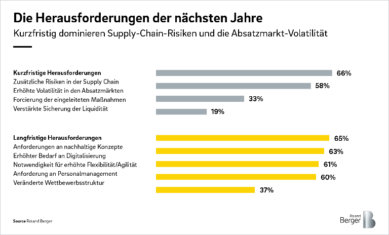 Wie sehr die Wettbewerber auseinanderdriften, zeigt ein Vergleich mit der Automobilindustrie. Obwohl sie nur rund 15 Prozent der Umfrageteilnehmer stellt, schneidet sie in Sachen Performance-Improvement-Bereitschaft deutlich besser als der Gesamtbranchen-Durchschnitt ab. Heißt übersetzt: Automobilunternehmen arbeiten im Schnitt energischer am Umbau ihres Lieferketten-Modells oder der Reorganisation der Unternehmensstruktur – beides Bereiche, die nach Angaben der Umfrageteilnehmer auch in nächster Zeit zu den größten Herausforderungen zählen und damit maßgeblichen Einfluss auf den Unternehmenserfolg haben.