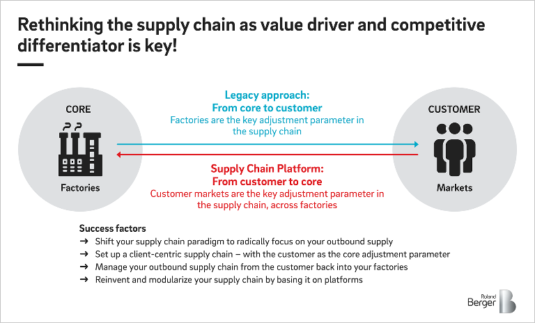 - Lieferkettenstrategie: Im aktuellen Marktumfeld muss die Vielzahl der ausgehenden Logistikketten für jede einzelne Geschäftseinheit durch produkt- und marktspezifische Lieferketten ersetzt werden, die im gesamten Unternehmen zum Einsatz kommen.