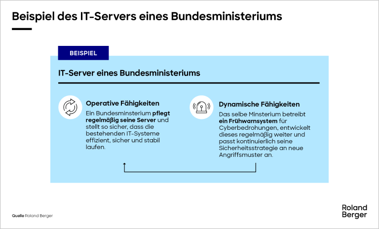 Beide Arten von Fähigkeiten sind für die Zukunft wichtig – sowohl operative Aufgabenerfüllung als auch dynamische Weiterentwicklung bzw. Anpassung. So müssen die IT-Systeme eines Bundesministeriums oder eines Bürgeramts im Alltag selbstredend stabil und sicher laufen. Gleichzeitig müssen sie aber auch in der Lage sein, tagesaktuelle Cyberbedrohungen abzuwehren bzw. neu aufkommende Bedrohungen zu antizipieren, um die Sicherheit der Daten von Bürgerinnen und Bürgern zu gewährleisten – sowohl heute als auch morgen. Hierzu muss das Frühwarnsystem regelmäßig neu adjustiert werden. Für die stetige Neuausrichtung sind mutige, experimentelle und ggf. auch szenariobasierte Ansätze notwendig.