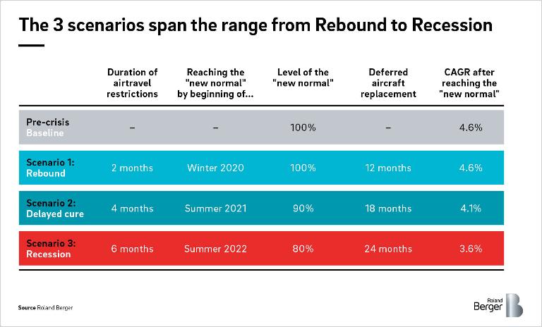 Air travel restrictions will last for two months and the "new normal" will be reached beginning with the winter flight plan 2020. Travel volume will reach 100% of pre-crisis levels. - Scenario 2: Delayed cure