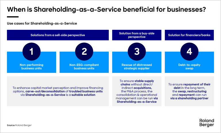 Shareholding-as-a-Service secures the operational continuation of the business unit while mitigating management risks and retaining restructuring opportunities, providing an attractive, customizable and efficient solution in several use cases.