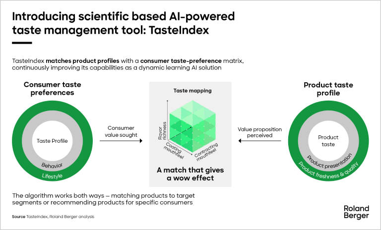 Roland Berger, together with TasteIndex, is helping retailers, foodservice players, and FMCG companies unlock this potential. By connecting taste to consumer segments and emerging market trends, they support businesses in building stronger portfolios, optimizing assortments, and designing go-to-market strategies that resonate more deeply with customers. The result is a new way of working: faster testing at scale, deeper insights into consumer drivers, and data-driven decisions that reduce uncertainty. With richer taste data available, companies can shorten time-to-market, improve the precision of their innovations, and ultimately achieve tangible commercial results, e.g. revenue growth. What was once an art can now become a science - bringing both creativity and certainty to the future of food.