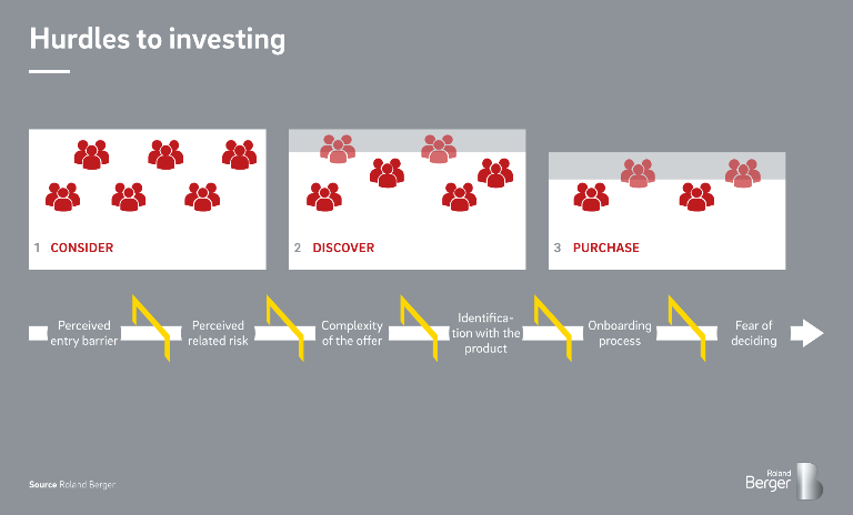 To successfully convert savings to investments, banks must help customers clear a set of hurdles along the way