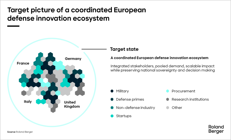With the lessons from Israel and Ukraine in mind, we outline our vision for a resilient European defense innovation ecosystem. It is built around three pillars: an agile regulatory and procurement framework that tolerates managed risk and accelerates capability delivery; closer collaboration between armed forces, industry, startups and research; and predictable and strategically aligned financing. The study explores each pillar in depth, for example, offering a target state for a coordinated ecosystem and strategies to rethink funding and pool demand to support scale. Such drivers ensure Europe can systematically harness innovation, scale emerging technologies and respond rapidly to evolving threats.