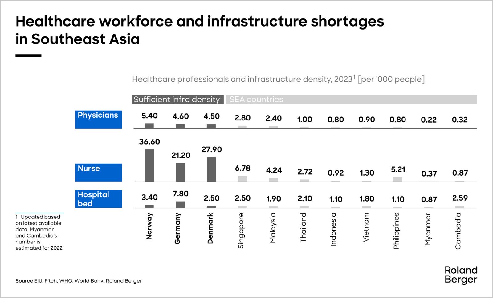 Additionally, SEA countries face a shortage of physicians, nurses, and specialists, which hinders their ability to meet the population's needs.