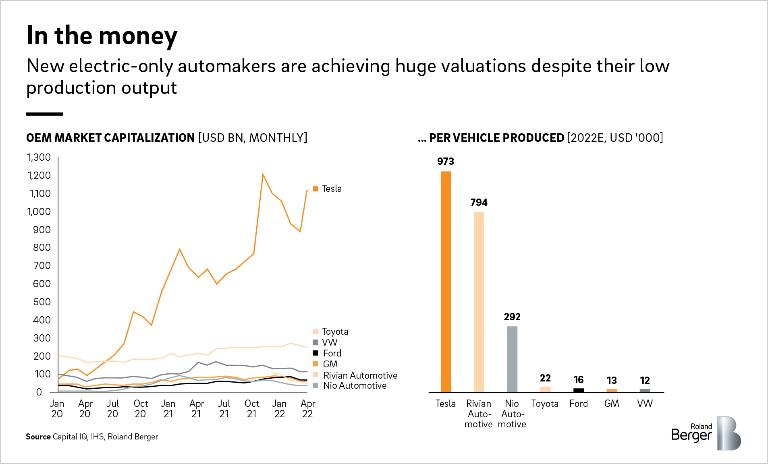 The second driver is increasing investments towards electric car manufacturers and e-mobility in general. This is proven by valuations of electric-only car manufacturers at an all-time high while stock market prices of traditional OEMs are experiencing a dip.