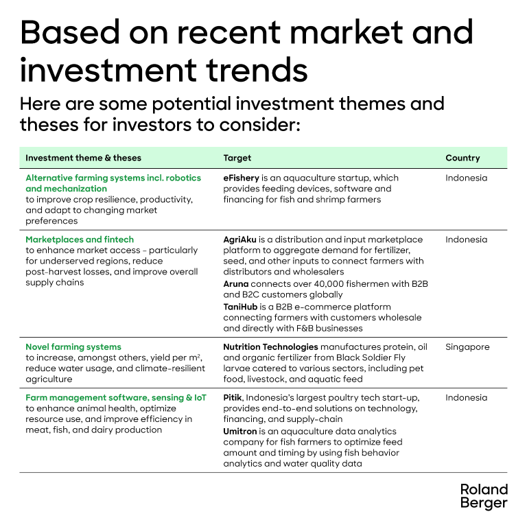 The region can play an important role in supporting the growing demand for food while maintaining a focus on doing this sustainably. Southeast Asia is also well positioned to capture the export demand beyond the traditional products (e.g. palm, rice, seafood) with new products and business models. The landscape of the agriculture market in Southeast Asia presents ample opportunities for investors across different parts of the value chain. There has been growing interest in agri-tech, amongst others, which saw significant investments in recent years.