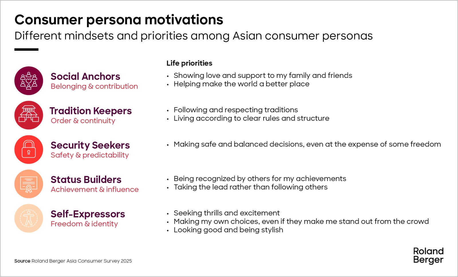 The study identifies five key consumer personas: Social Anchors, Tradition Keepers, Security Seekers, Status Builders and Self-Expressors. These archetypes shape spending patterns and priorities across the region, from the community-driven Filipino shopper to the quality-obsessed Vietnamese and the trend-driven South Korean. Understanding these personas is critical for brands aiming to localize their strategies and connect with Asia’s diverse consumers.
