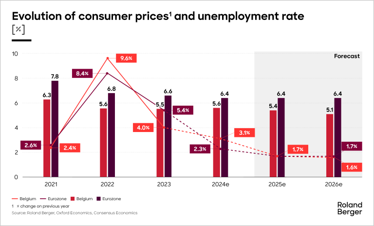 Inflation & unemployment are expected to decline, both in Belgium and the Eurozone