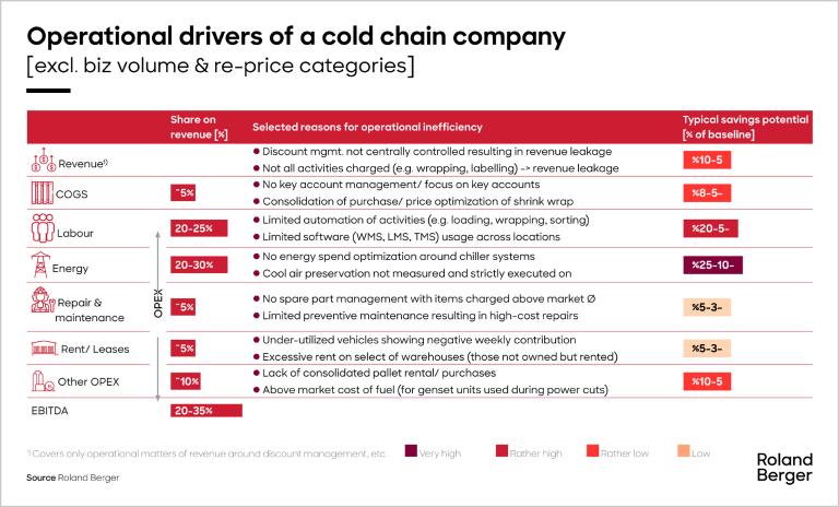 Based on our operational excellence experience, energy efficiency savings can be the biggest driver to reduce costs. This includes everything from equipment efficiency, such as refrigeration systems and insulation paneling, to level of automation, such as the use of sensors and temperature control. The second biggest cost bucket is labor, which can be optimized by use and adherence to standard operating procedures according to the facility's and customer's needs.