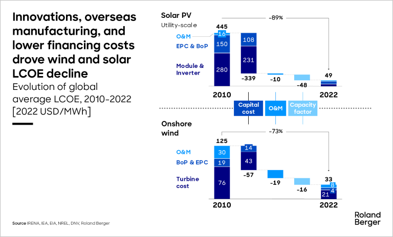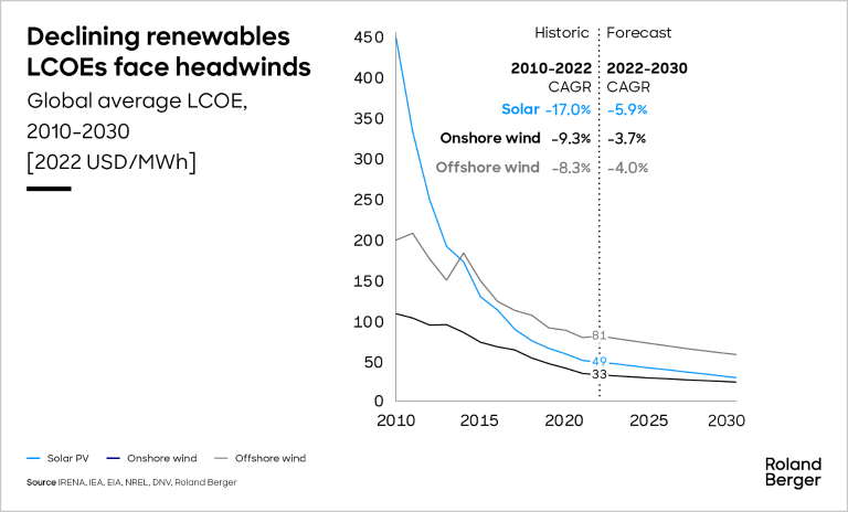 - Financing costs, too, have fallen significantly over the past ten to twelve years. A growing inventory of successful renewable power projects has reduced perceived risk and paved the way to lower premiums on debt and the required return on equity. Even despite recent increases in interest rates, the weighted average cost of capital has decreased by around 2 to 3 percentage points since 2010.