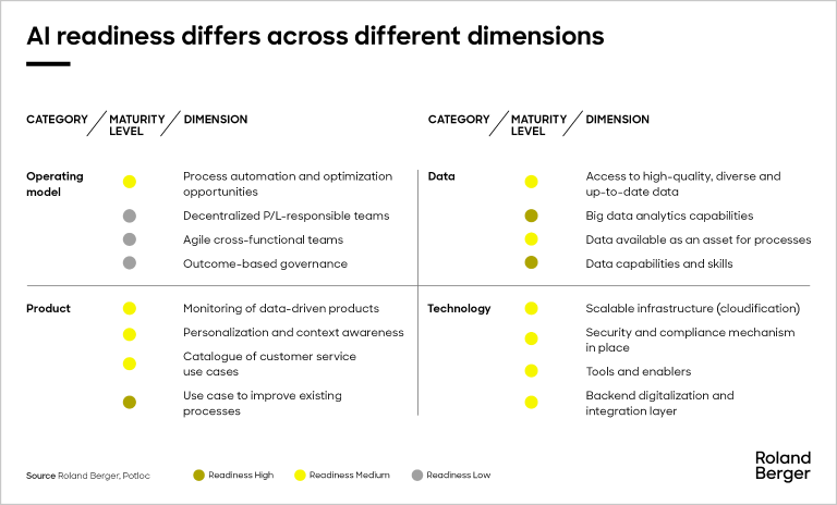 Overall, most industries are not yet in a position to fully utilize AI technology in their customer services. For these players and others, we recommend taking a structured approach to the transformation, ensuring that all aspects are covered. To read the full results of the survey and our detailed recommendations, sign up for the report below – and learn how you can fully embrace the potential of AI in your customer services.