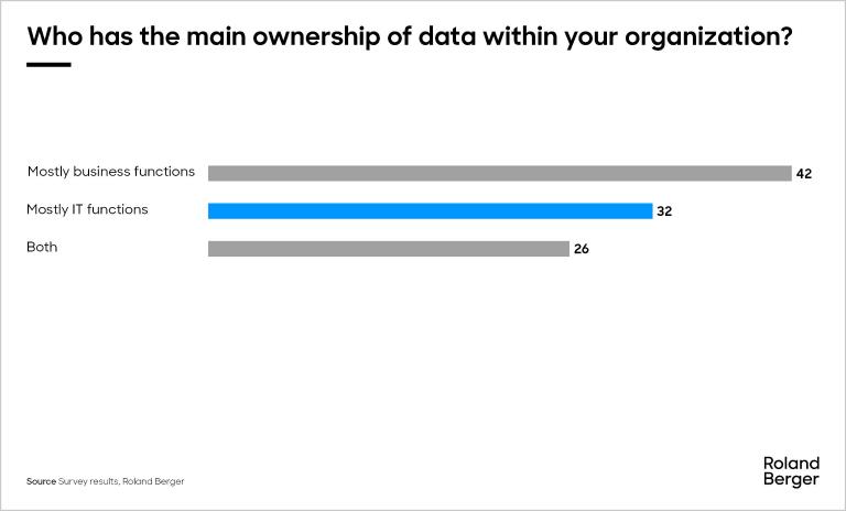 On the other hand, data analysis or usage also has significant room for enhancement. None of the participants consider their capabilities to be "best in class," with only 8% ranking them as "excellent," while a quarter view their capabilities as 'average.' This could be attributed, in part, to the fact that 32% of respondents see IT as the primary party responsible for data analytics (refer to ref b.), and 22% do not have or are unaware of their organization's use of a data framework.