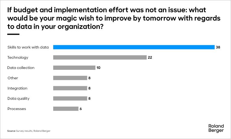 While 74% of respondents have plans ranging from the short (0-2 years) to mid-term (3-5 years) duration to increase their use of data to generate business insights, some key issues persist that may hinder their success. The main obstacle by a wide margin is the availability of skilled personnel (refer to ref d.), followed by legacy systems that must catch up with modern data collection and analysis approaches.
