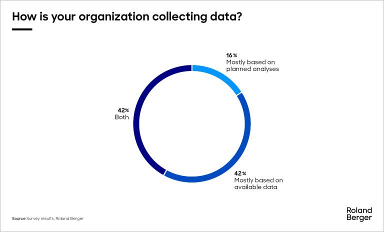 Only 18% of respondents regard carbon footprint tracking as data-intensive in their organization, and just 16% reveal that data collection relies on planned analyses. Meanwhile, 42% indicate relying primarily on available data, and another 42% on both approaches (refer to ref a.).