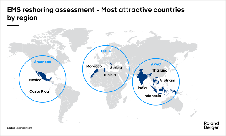 As EMS providers weigh up reshoring in response to trade tensions and supply chain worries, Roland Berger reveals attractive alternatives to existing footprints