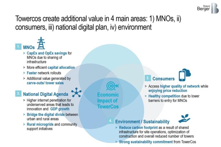 - Significant benefits can be realized through TowerCos and InfraCos taking a more prominent role in the eco-system – ranging from savings for telecom operators, acceleration of national digital agendas and lower carbon footprint through efficiencies and higher asset sharing