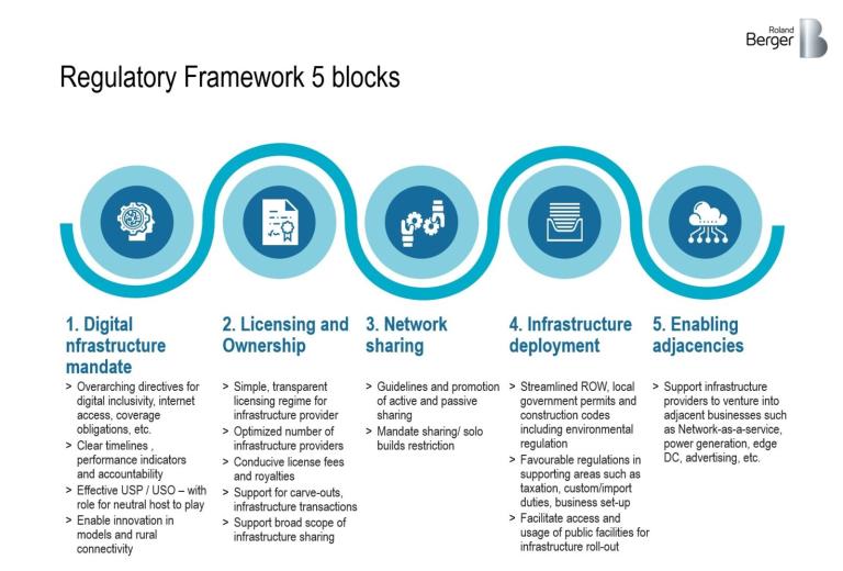 - To support this development, the regulatory environment needs to be more condu. Roland Berger sees 5 key thrusts that regulators and policy makers should focus on to foster the development of digital infrastructure: