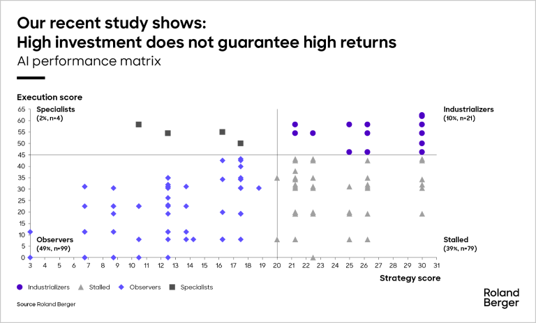 *Based on a survey of 203 senior executives across industries. The gap between "Industrializers" and the rest is widening — and is rooted in organizational architecture, not technological access. https://www.rolandberger.com/en/Insights/Publications/Profitless-prosperity-in-AI.html
