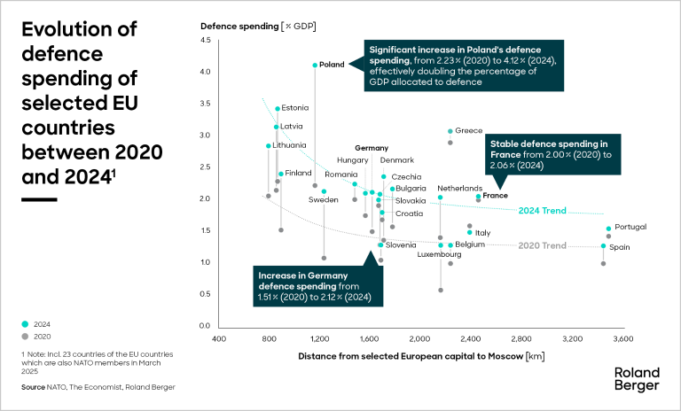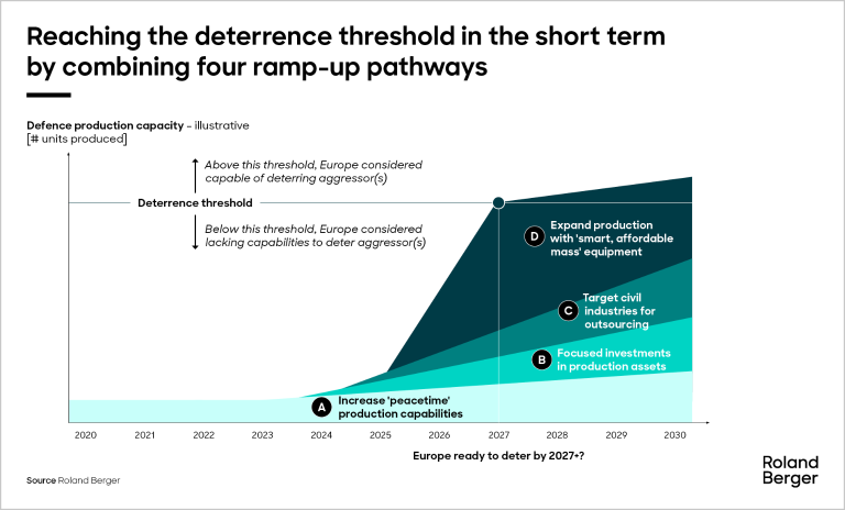 Europe finds itself in an environment of existential threat. Although the continent’s defence budgets are on the rise, achieving sustainable deterrence requires more than financial resources – it demands a holistic approach suited to evolving warfare paradigms. In a new report, Roland Berger examines how Europe can ramp up industrial capacity and spur innovation, highlighting priority areas for both public and private actors.