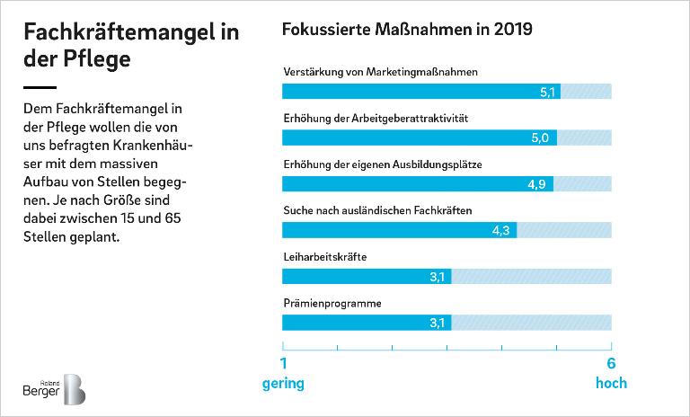 The "Roland Berger Hospital Study 2019" shows the serious economic and personnel situation of German hospitals. As part of the analysis, management consultants interviewed board members and managing directors of the country's 400 largest hospitals, and the answers give little cause for celebration. Two factors are particular cause for headache: constantly rising cost pressure and increased competition for qualified nursing staff.