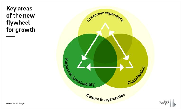 In today’s difficult economic climate, growth is hard to come by even for firms with a long and successful track record. Yet, many born-good and digital native companies seem to do better and, as such, offer inspiration to established players. Roland Berger has taken a deep dive into what success factors enable these types of companies to perform so well even in an adverse climate. Better still: Its investigation reveals how established players can apply the same key success factors to activate their own “flywheel for growth”.