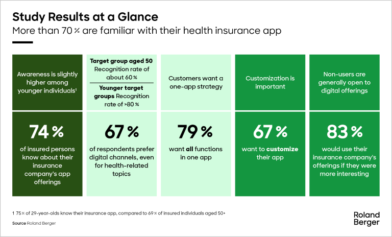 With a One App approach that comprehensively addresses the wishes of the target group and offers policyholders access to integrated service modules via a central account, health insurance companies can gain important competitive advantages. The aim must be to establish the app as a central platform for health management that offers policyholders the opportunity to track their health data, manage appointments and communicate with other healthcare providers. By offering personalized recommendations and reminders, it also supports care management, optimizes patient care and improves the efficiency of the healthcare system.