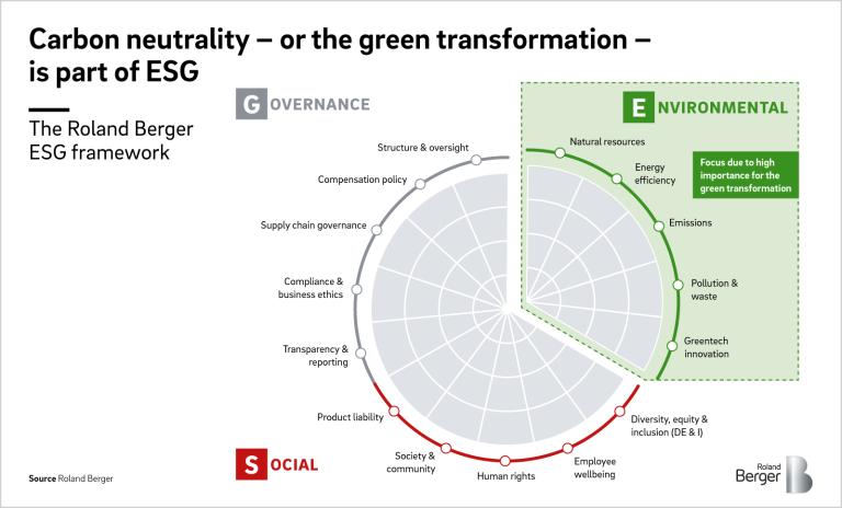 We believe private equity can act as a catalyst for the green transformation, which plays a major role in transforming companies from gray to green. For regulators, rating agencies, and limited partners, the various aspects of the green transformation – in other words, achieving carbon neutrality – are embedded in ESG frameworks. Thus, a careful balance must be struck between striving for carbon neutrality and meeting social and governance requirements, increasing the complexity even further. We consider all three dimensions below.