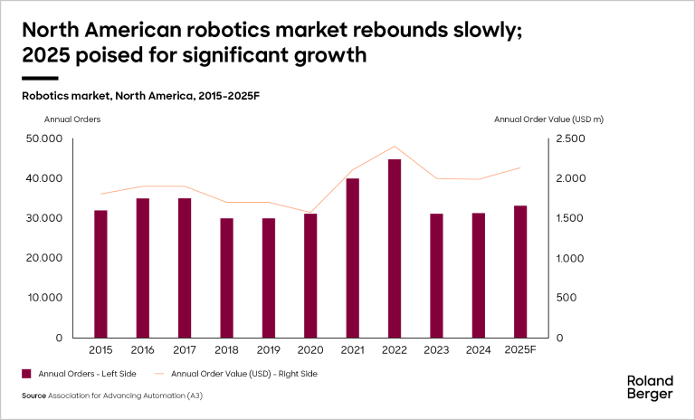 Within North America, the robotics, and overall industrial automation market, has seen some top-line challenges in the last several years. The discrete end markets have been hit particularly hard as buildout in these sectors has slowed, and in some cases, reversed. The near- to mid-term outlook however is strong, driven by a confluence of factors including aggressive reshoring initiatives, significant manufacturing investments, and strategic government support aimed at decoupling from China.