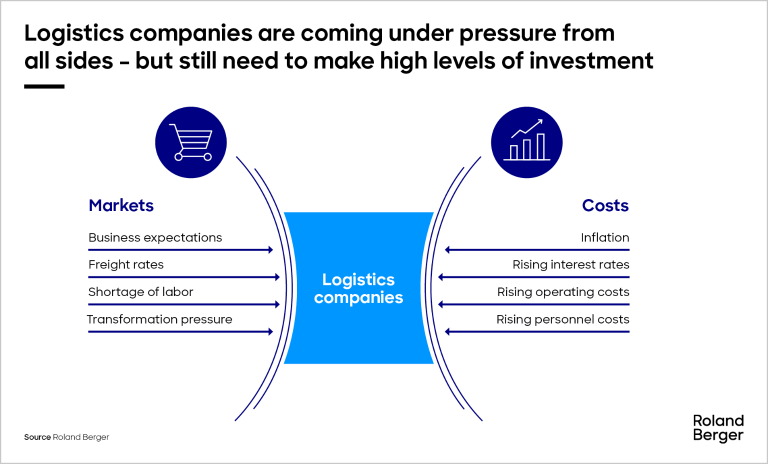 The current crisis is unlikely to be a short-lived slump. The entire logistics industry is facing fundamental challenges. Not only rising costs and falling freight rates are weighing on companies' profitability (EBITDA). Labor shortages and megatrends like digitalization and sustainability are also placing heavy demands on businesses in the sector. Added to that, political requirements such as Germany's Supply Chain Sourcing Obligations Act (LkSG), growing uncertainty and delayed infrastructure projects demand a great deal of flexibility from companies and add a measure of unpredictability to their investment plans.