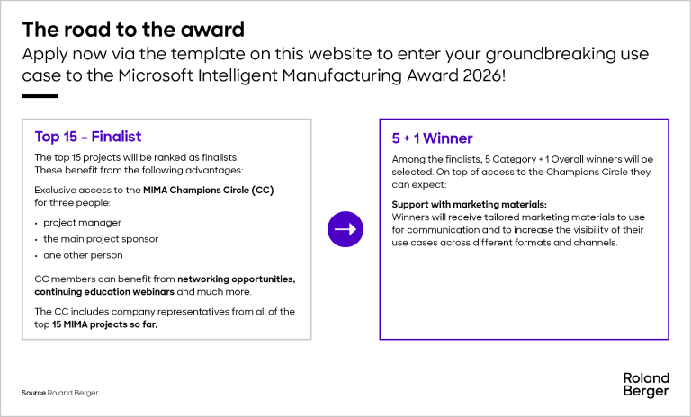 The Microsoft Intelligent Manufacturing Award (MIMA), jointly organized by Microsoft and Roland Berger, celebrates thought leaders who are shaping the future of industry with their ideas and solutions.