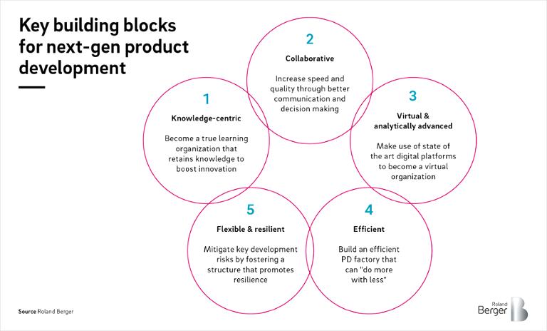 Roland Berger's Next Generation Product Development Report identifies five critical building blocks that have the maximum impact in moving PD organizations to the next maturity level of product development.