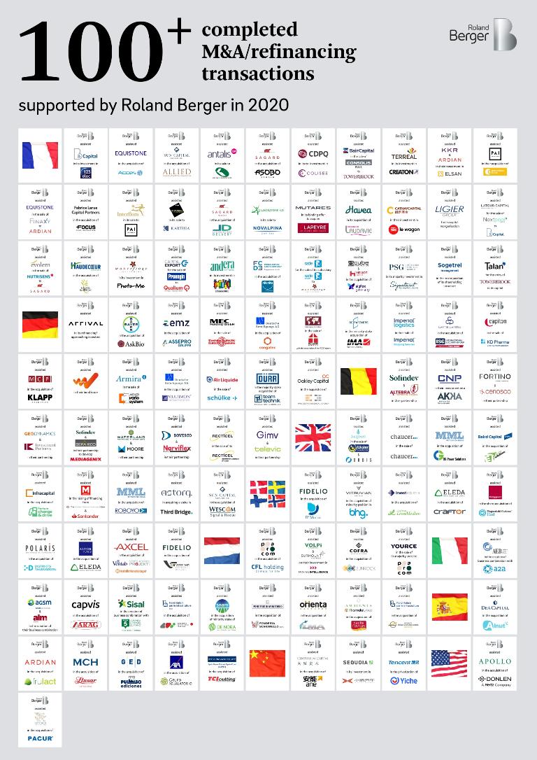 This expert-based approach has enabled us to develop strong, lasting relationships with our clients over the years. This was key to our performance in 2020, as the private equity market saw an increase of preemptive and confidential processes. Roland Berger was able to fully participate in this flight-to-quality trend, due to massively available dry powder. We are especially proud and grateful that our clients' trust allowed us to accompany them during these processes and we look forward to continuing to strive for success in 2021.