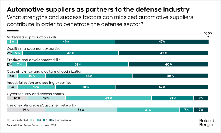 A second reason for the positive expectations in the defense sector is the technological similarities that exist between the two industries. Suppliers already possess compelling capabilities in fields such as sensors, and systems integration, for example. Material and manufacturing skills likewise position midsized automotive firms as attractive partners, as does their quality management expertise.