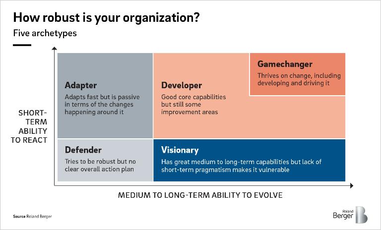 In today's world of extreme turbulence and uncertainty, businesses have very little time to evaluate, decide and react to the changes happening around them. The complexity of the many different variables that need to be modeled make forecasting and advance planning almost impossible. How, then, can they ensure that they survive – and even thrive – amid the turmoil? At Roland Berger, we believe that the answer lies in a concept that goes beyond organizational principles or finding the "right" reaction to specific events or issues. Instead, we focus on a special type of resilience that we call robustness: the ability of organizations to adapt, develop and evolve, navigating uncertainty while preserving their functioning, competitive stance and long-term growth.