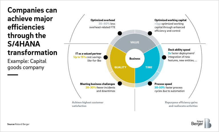 To find out more about how you can reap the benefits of the S/4 HANA transformation, download the full study here. To learn more about how Roland Berger can support you during your transformation journey, contact one of our experts.