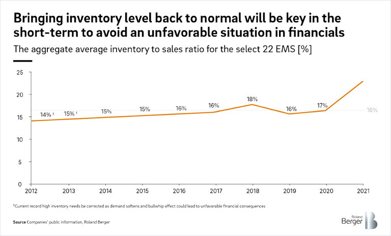 Consequently, we expect a significant bullwhip effect soon. Many affected companies increased their safety stocks from a historic average of 16% to now more than 23% and now need to manage the financial burden especially in view of increasing capital cost