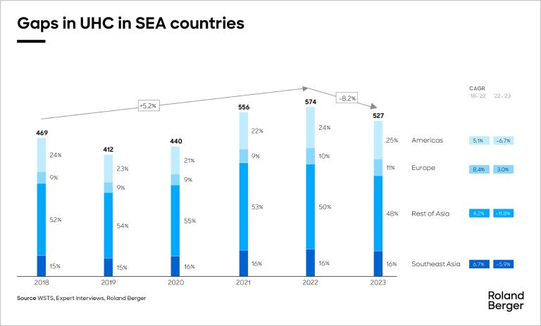 Southeast Asia was impacted by the downturn in 2023, but at a less severe rate compared to the rest of Asia & Americas. With a CAGR of 6.7%, Southeast Asia is expected to continue to outgrow the semiconductor market.