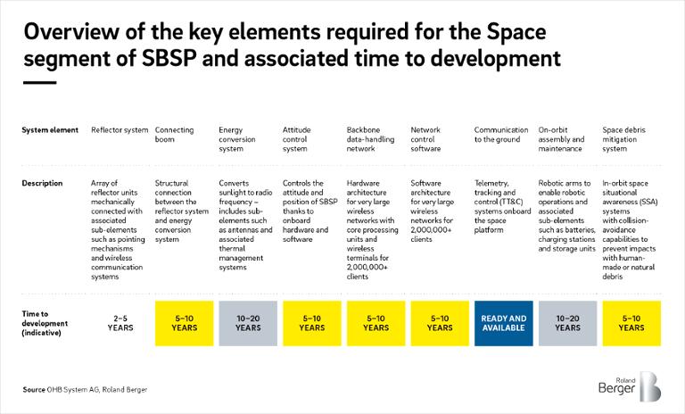 Several technologies still at low maturity will need to reach the technological readiness level necessary to prove to decision-makers the viability of SBSP. It is expected that some of the required technologies will gain maturity in the context of other development programs launched by public research agencies. On the other hand, other technologies (for example wireless power transmission) will require dedicated resources and should be prioritized. - Step 3: Launch a demonstrator to confirm the viability of SBSP (2024–2035):