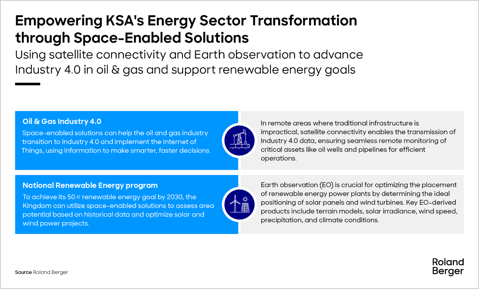 The space sector holds immense potential for the Kingdom of Saudi Arabia (KSA), offering a pathway to position the country as a regional leader, showcase its technological capabilities, and advance its Vision 2030 objectives. Space exploration can bring many benefits across various critical sectors, all vital to the Kingdom's future. This article explores the intersection of KSA's strategic ambitions and the untapped opportunities of space-enabled solutions.