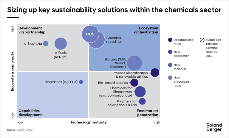 These high-potential technologies warrant additional consideration as they are each part of complex ecosystems yet represent promising growth avenues in the chemical industry's sustainability transition.