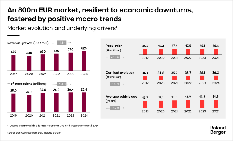 Periodic technical inspection (PTI) has been mandatory for all vehicles in Spain since the late 1980s, with the regulatory framework consolidated in the early 1990s (Real Decreto 2344/1985 and subsequent regional implementation). This statutory obligation created a stable, recurring demand for inspection services; today there are around 2,200 testing stations and more than 20 million inspections each year. The sector’s resilience was evident during the COVID-19 pandemic: from 2019 to 2020, inspection volumes and revenues declined by only 6–7%, underscoring the non-discretionary nature of demand and the sector’s ability to maintain stable cash flows even in challenging macroeconomic conditions.