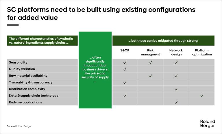 The more precarious characteristics of natural supply chains underscore the importance of proper mitigation. In their switch to natural, ingredient producers must keep a tight leash on their sales & operations planning (S&OP), risk management, network design and platform optimization.