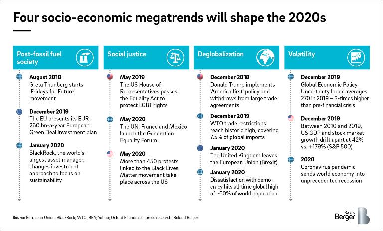 Growing demands for social justice, with the Black Lives Matter movement currently the most prominent, is another notable megatrend. Deglobalization, driven by trade wars, protectionist policies (such as America First) and nationalist policies (for example Brexit), is a third.